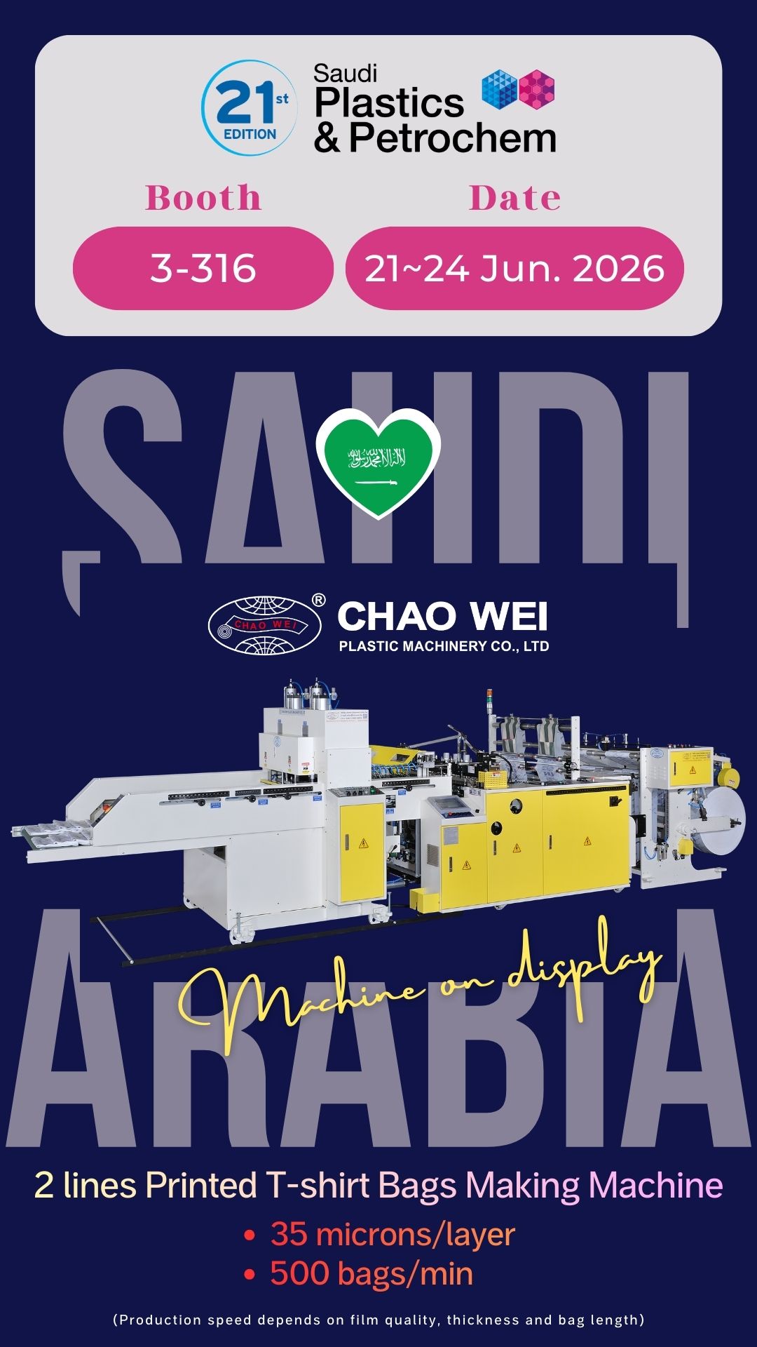 Come visit us to see the Super High Speed T-shirt bag making machine that we are going to display in our booth.